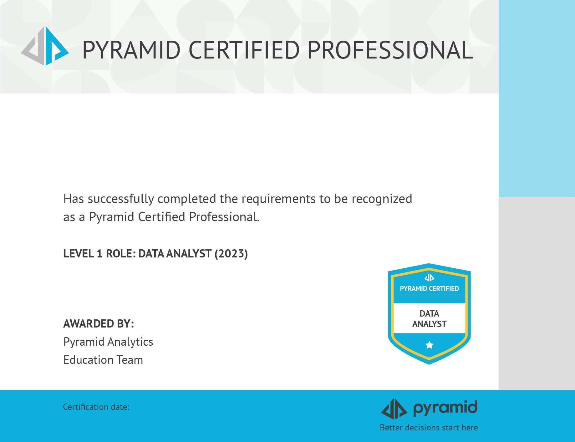 Level 1 Role Certificate: Data Analyst (2023)